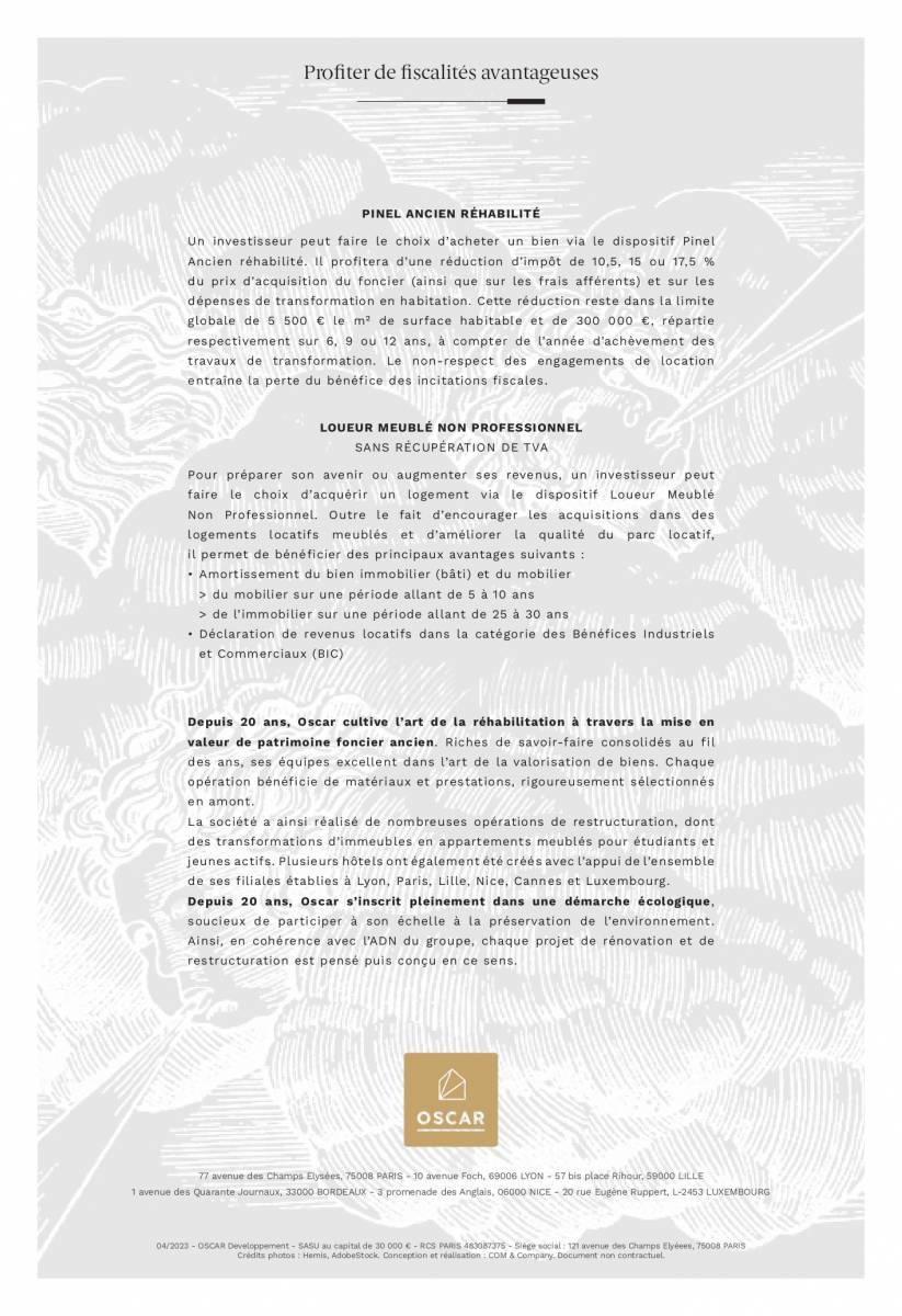Installée à l'abri des agitations de la ville, Oscar Développement propose 11 appartements du Studio au T2 rue Frédéric Mistral à Lyon 3, aménagés de manière à optimiser chaque espace. Les façades sont revêtues de pierres apparentes et sont percées par de hautes fenêtres qui baignent chaque logement de lumière naturelle.