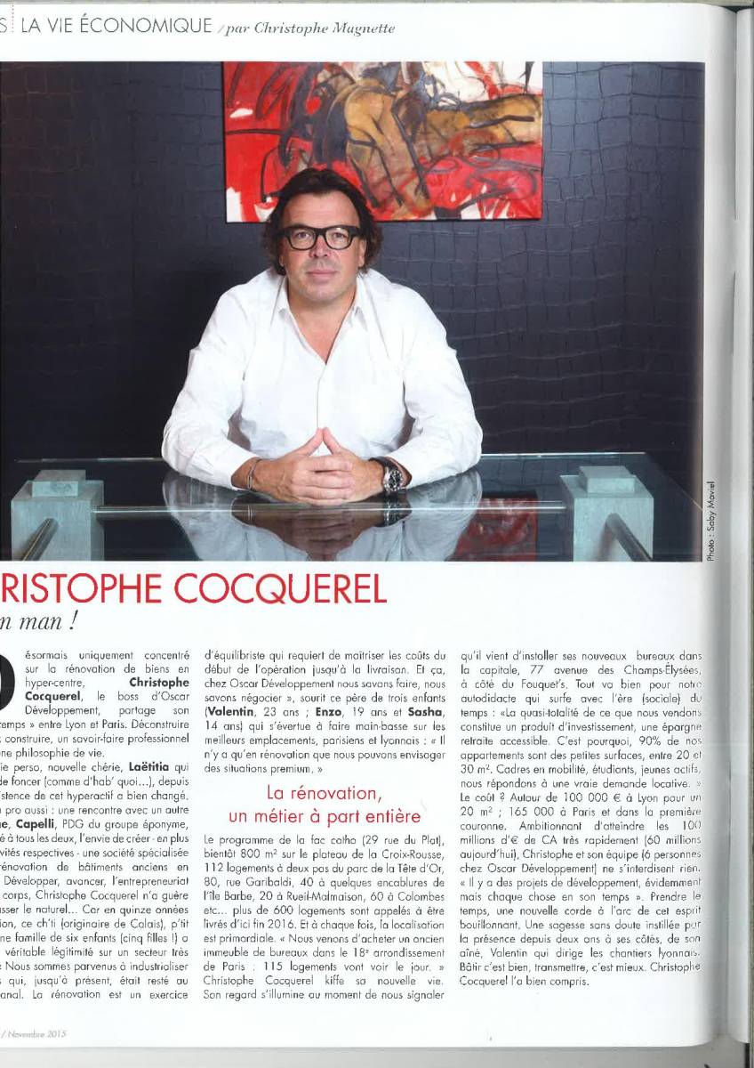 Dans le fameux magazine "Lyon People", Christophe COCQUEREL fondateur de l'entreprise OSCAR DEVELOPPEMENT apparait dans le TOP 100 des hommes influents.