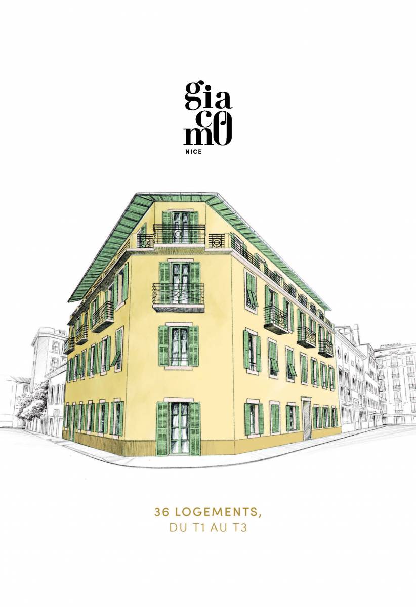 Niché au numéro un de l'impasse Meyerbeer, Le Giacomo se déploie élégamment en "V", autour d'un îlot central. Répartie sur trois étages, la résidence tout en ocre clair compte de nombreuses baies vitrées qui laissent largement entrer la lumière. Le Giacomo propose 36 logements du T1 au T3 dans la métropole NICE CÔTE D'AZUR. En façade, les volets niçois à "portissol" couleur vert olive, créent un doux contraste, tandis que les ferronneries des balcons d'époque ajoutent au charme authentique de l'édifice.